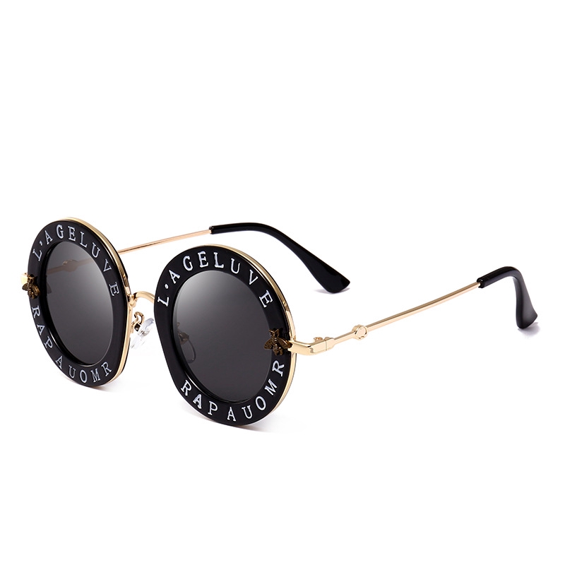 Retro Round Sunglasses Women Brand Designer English Letters Bee Metal Frame Round Sun Glasses Shopee Indonesia