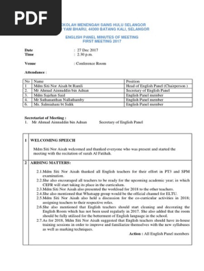 Doc Minit Mesyuarat Panitia Bahasa Inggeris Alis Hafizi Academia Edu
