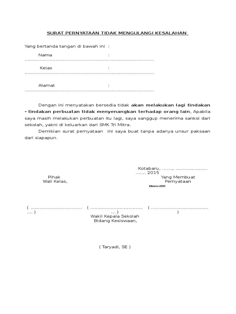 18 Contoh Surat Pernyataan Naik Kelas Bersyarat Sd