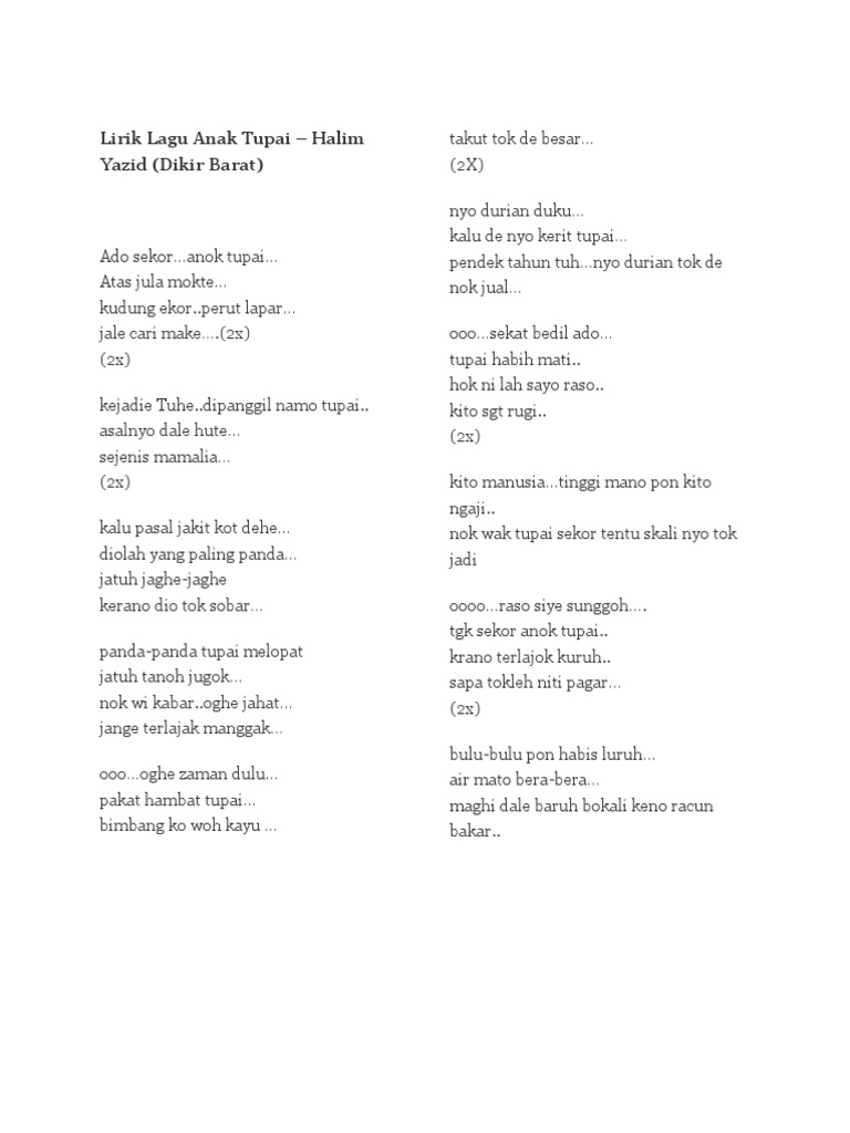 Lirik Lagu Dikir Barat Anak Tupai Halim Yazid Ado Sekor Anok Tupai Atah Julai Mokte