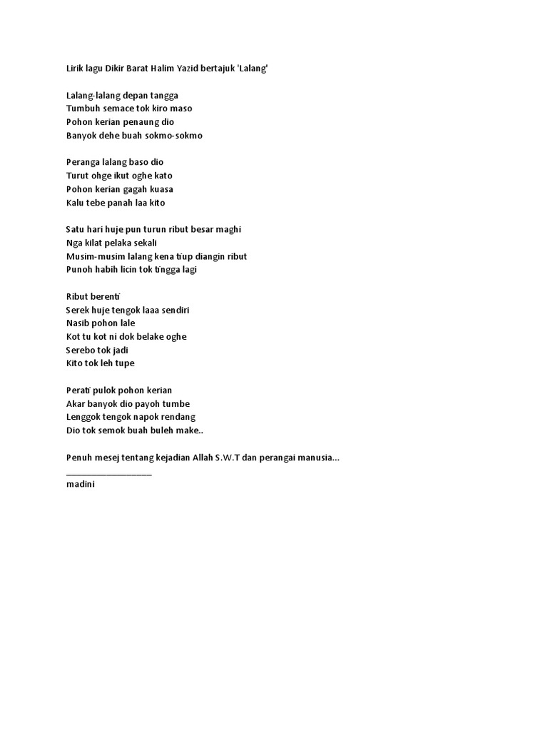 Lirik Lagu Dikir Barat Halim Yazid Lalang