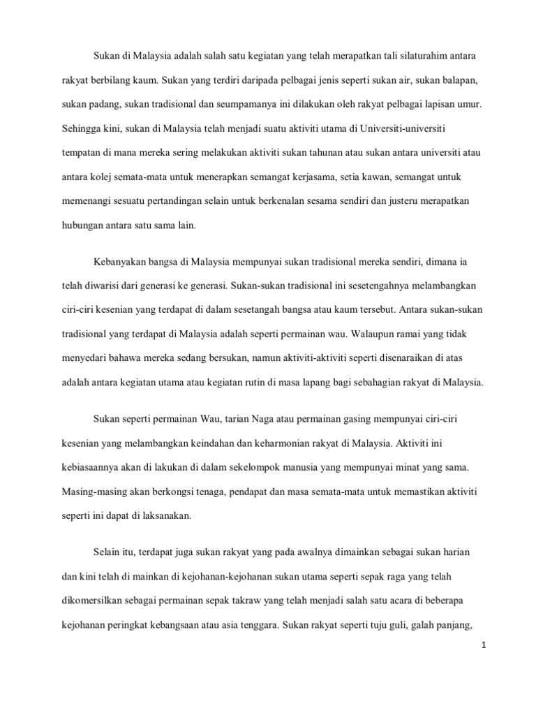 Pengenalan Sukan Di Malaysia Adalah Salah Satu Kegiatan Yang Telah Merapatkan Tali Silaturahim Antara