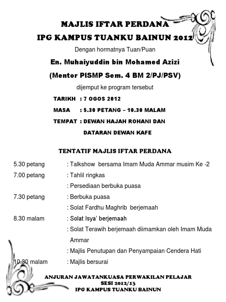 Contoh Surat Jemputan Majlis Berbuka Puasa