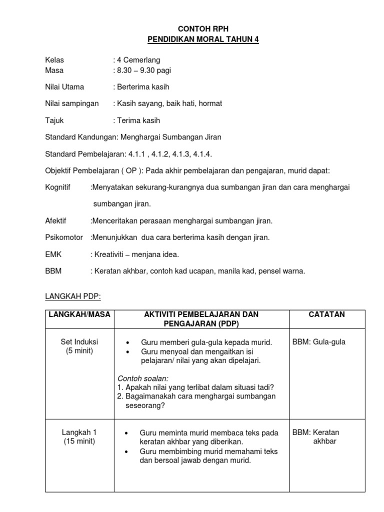 3 Rph Pendidikan Moral Berterima Kasih Tahun 4 Pdf Document