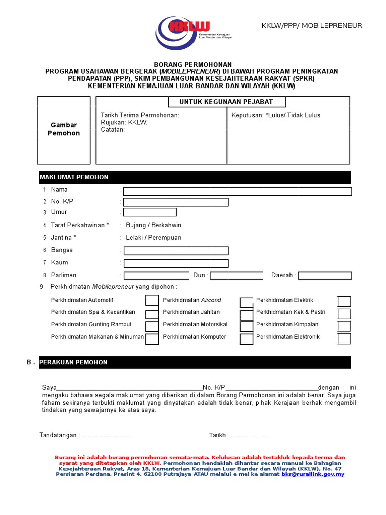 Borang Permohonan Program Mobilepreneur Bkr