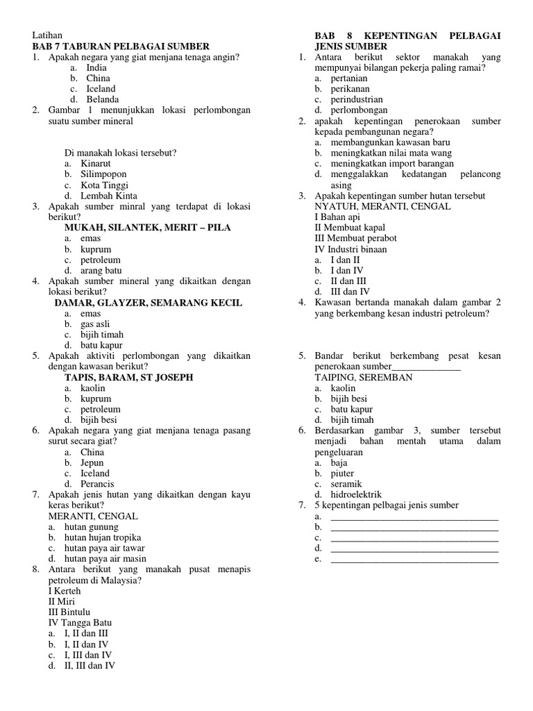 Bab 7 Taburan Pelbagai Sumber Bab 8 Kepentingan Pelbagai Jenis Sumber