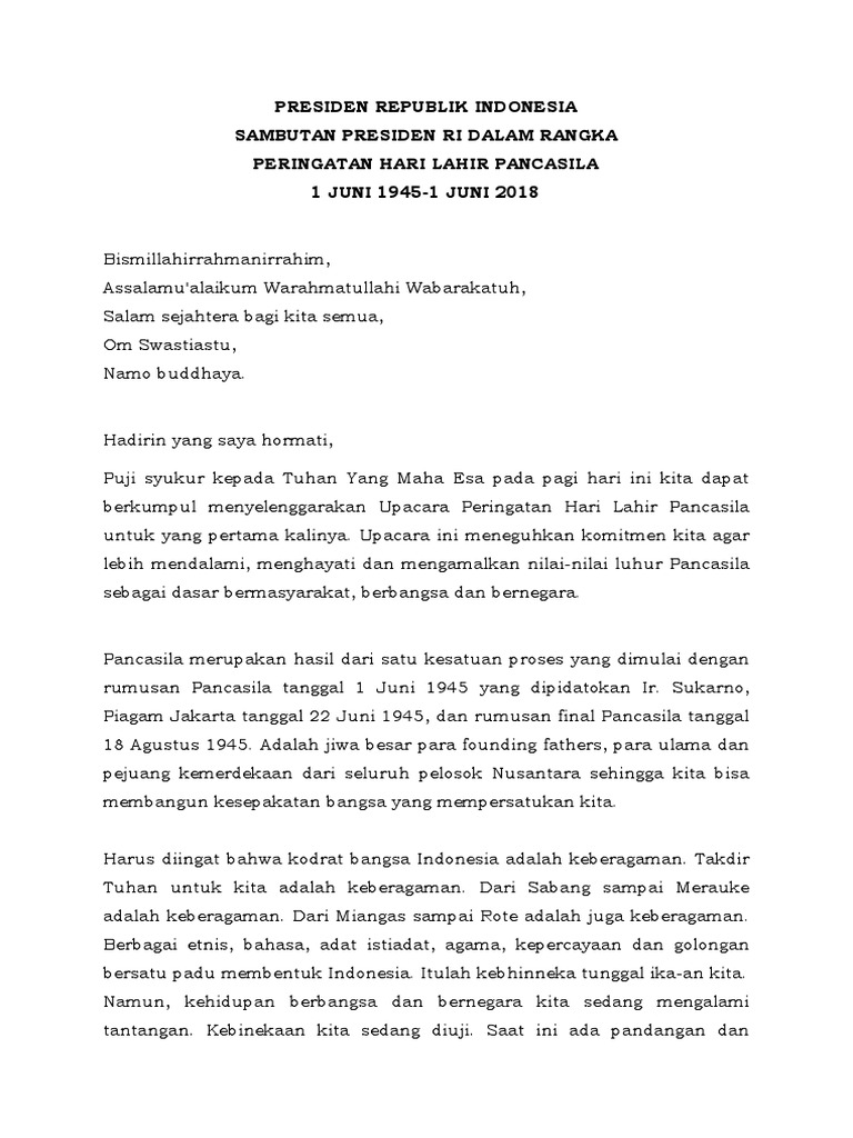 Presiden Republik Indonesia Sambutan Presiden Ri Dalam Rangka Peringatan Hari Lahir Pancasila 1 Juni 1945 1 Juni 2018