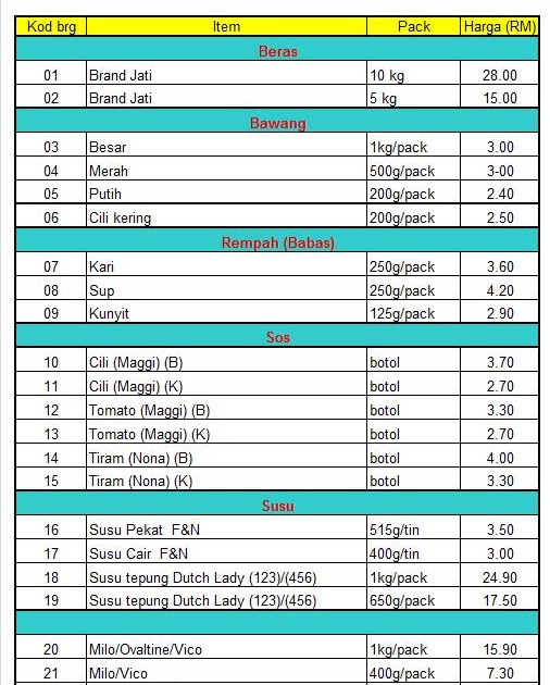 Kedai Runcit On Line Dibawah Nie List Barang Berserta Harga Yang Kami Tawarkan Untuk Penghantaran