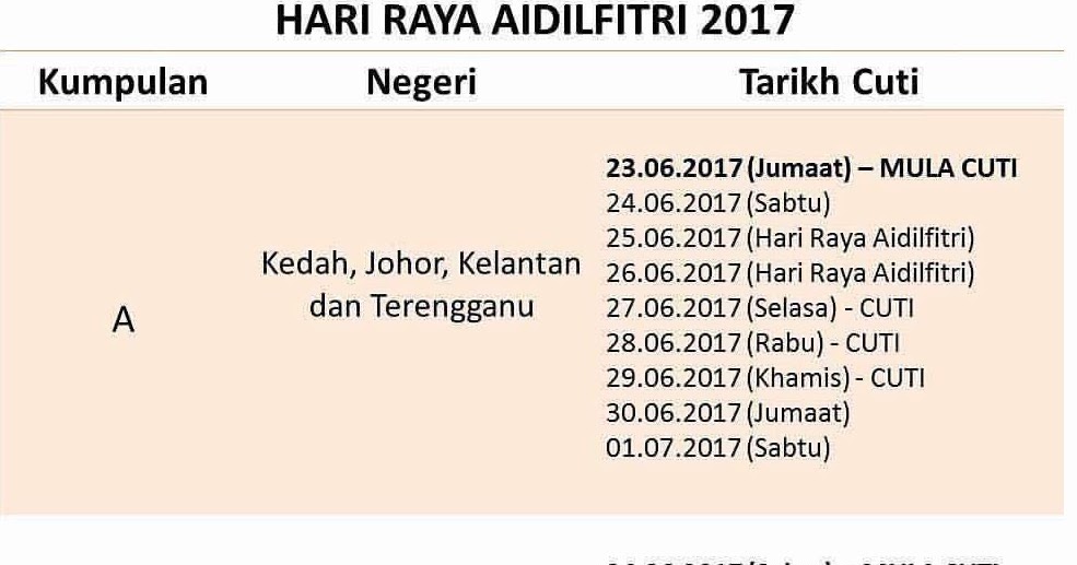 Skphem Tarikh Cuti Hari Raya Aidilfitri 2017